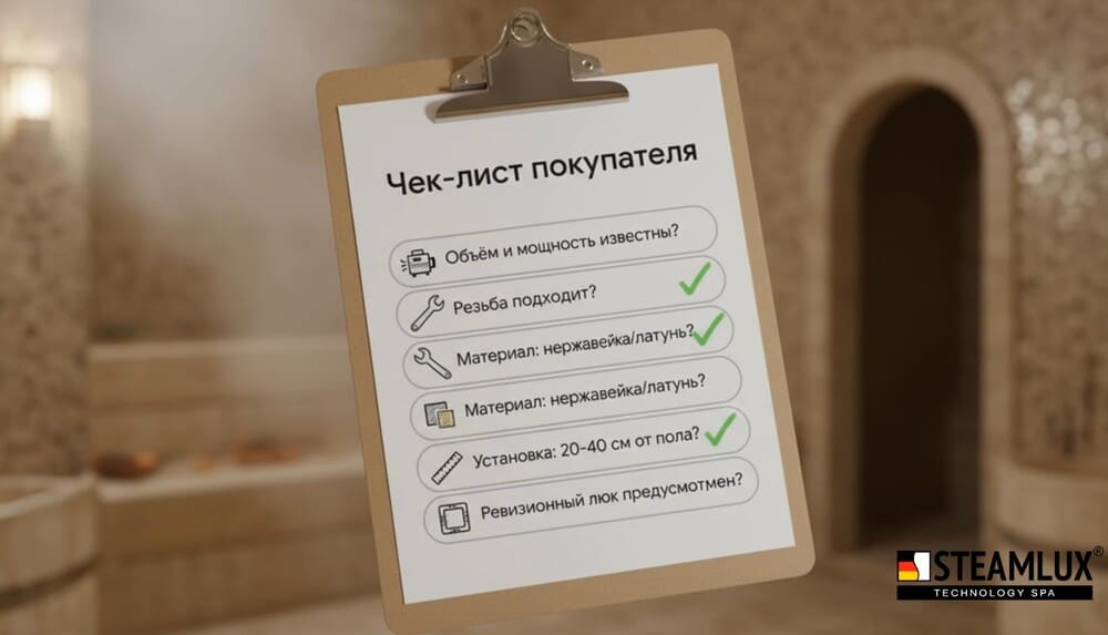 ✅ Форсунка решает 80% комфорта хамама. Неправильный выбор убьёт впечатление даже от премиального парогенератора.