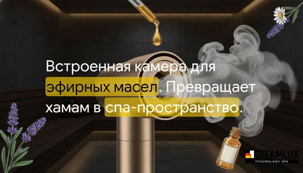 Важная деталь: Арома-точка располагается до выхода пара, чтобы масла не оседали в паропроводе и не засоряли систему.